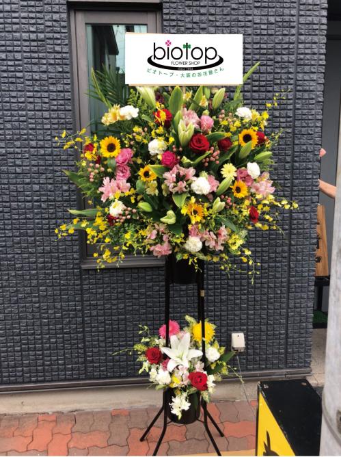 当店自慢のスタンド花!ボリュームアップバージョン!季節の花々をふんだんに使って豪華に作らせていただきます!使用花材は季節によって変動しますがbiotopスタッフがおまかせでおつくりさせて頂きます!