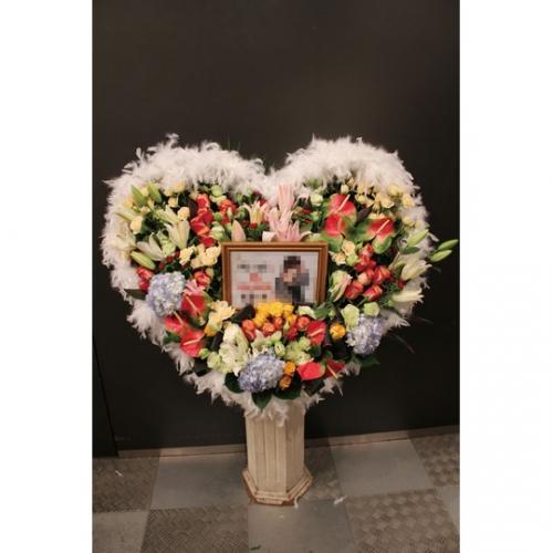 ハート型のスタンド花です!イベントごとや、舞台など幅広くご利用いただけます!少し変わったスタンド花を贈りたい!目立ちたい!といったお客様に最適です!こちらの商品はご注文いただいてから準備を要する商品になりますので、少しお早めにご注文くださいませ!