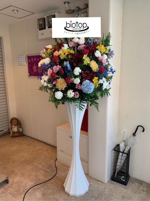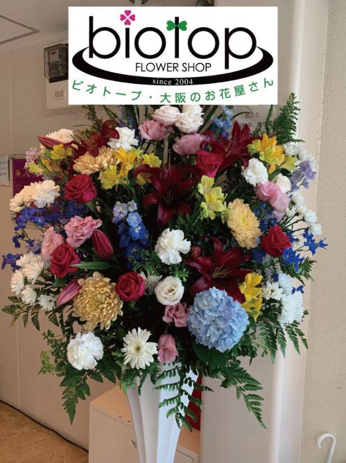 カラフルな花材を使いゴージャスに仕上げます!お洒落なお店や、ゴージャスなお店にピッタリ!モダンスタンドを何台も並べると圧巻の綺麗さです!