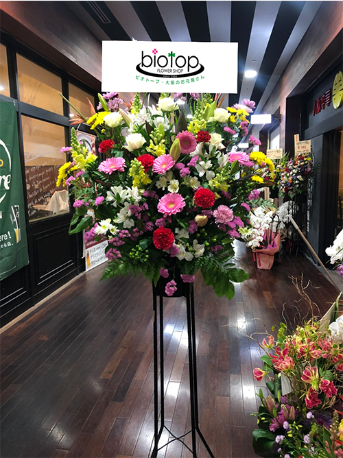 季節のお花で仕上げさせていただいた豪華なスタンドです。