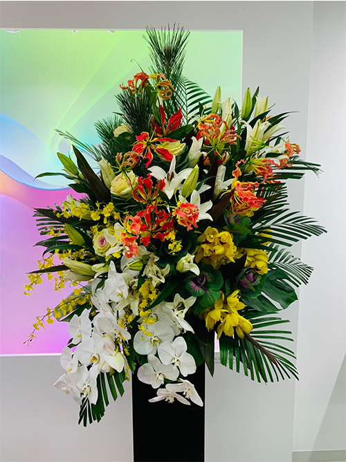 季節の花たちを存分に使った豪華でおしゃれなスタンド花になっております!