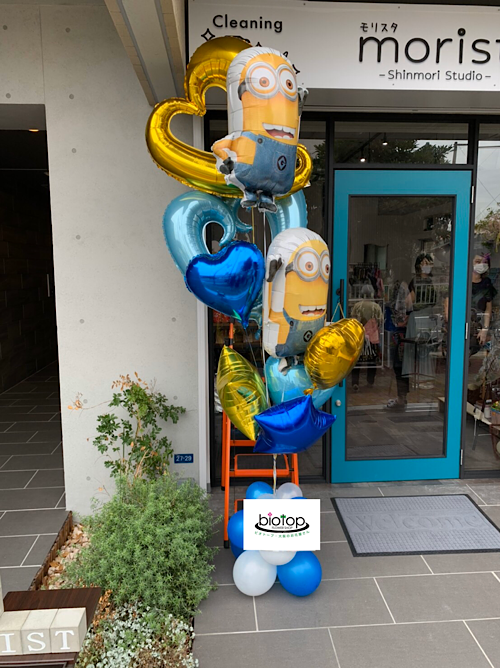 biotop(ビオトープ)特製の【バルーンギフト】です。この商品は【ミニオン】バージョンです!可愛いキャラクター達が一層イベントを盛り上げてくれること間違いなし!御誕生日お祝いに等に最適です!