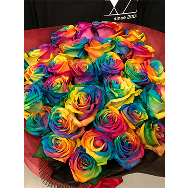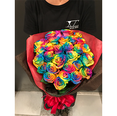 希少価値の高いレインボーローズを贅沢に30本使用した花束です。