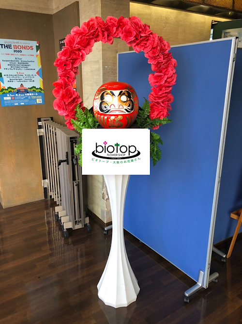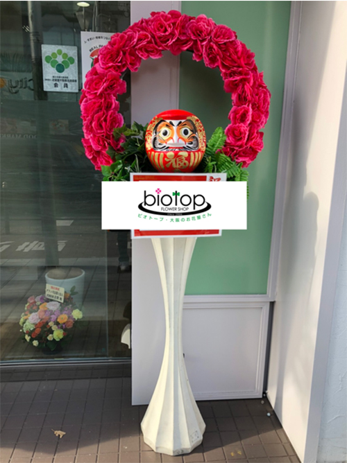 【だるまスタンド(造花)】縁起のいいだるまが入ったスタンド花!