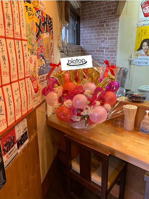 文字バルーンを使用したかわいいバルーンアレンジになります!