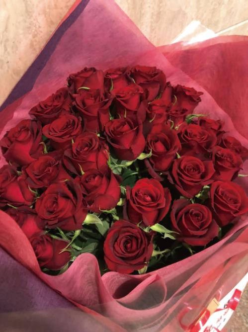 赤バラ25本を使用した花束です!ワンサイドタイプで大きくお作りさせて頂きます。
