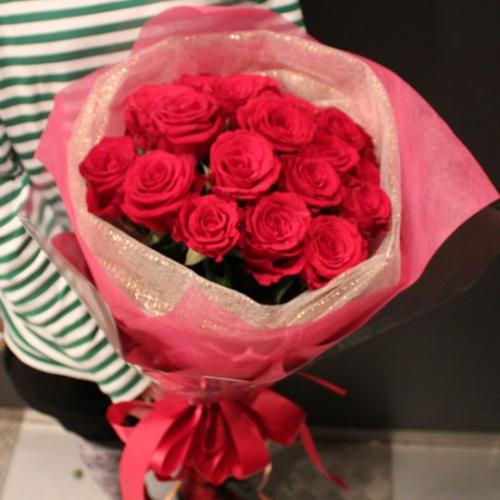 赤バラを使用した花束です!ブーケタイプで可愛さを演出!